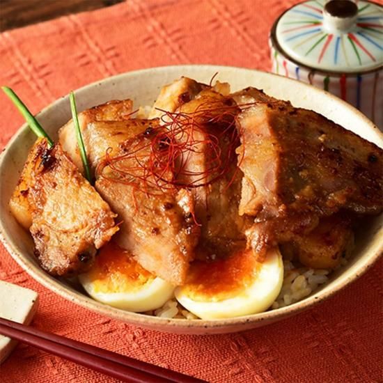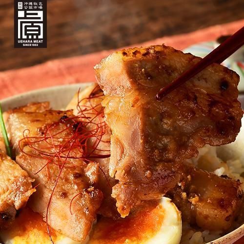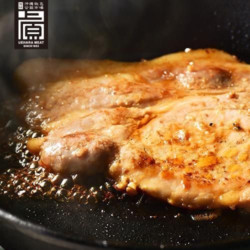 沖縄県産の豚ロースを、琉球王家御用達の伝統ある「まるたま特選味噌」使用のたれで漬け込みました。しっかり焼き色をつけると味噌の芳醇な香りが食欲をそそりご飯がすすみます。